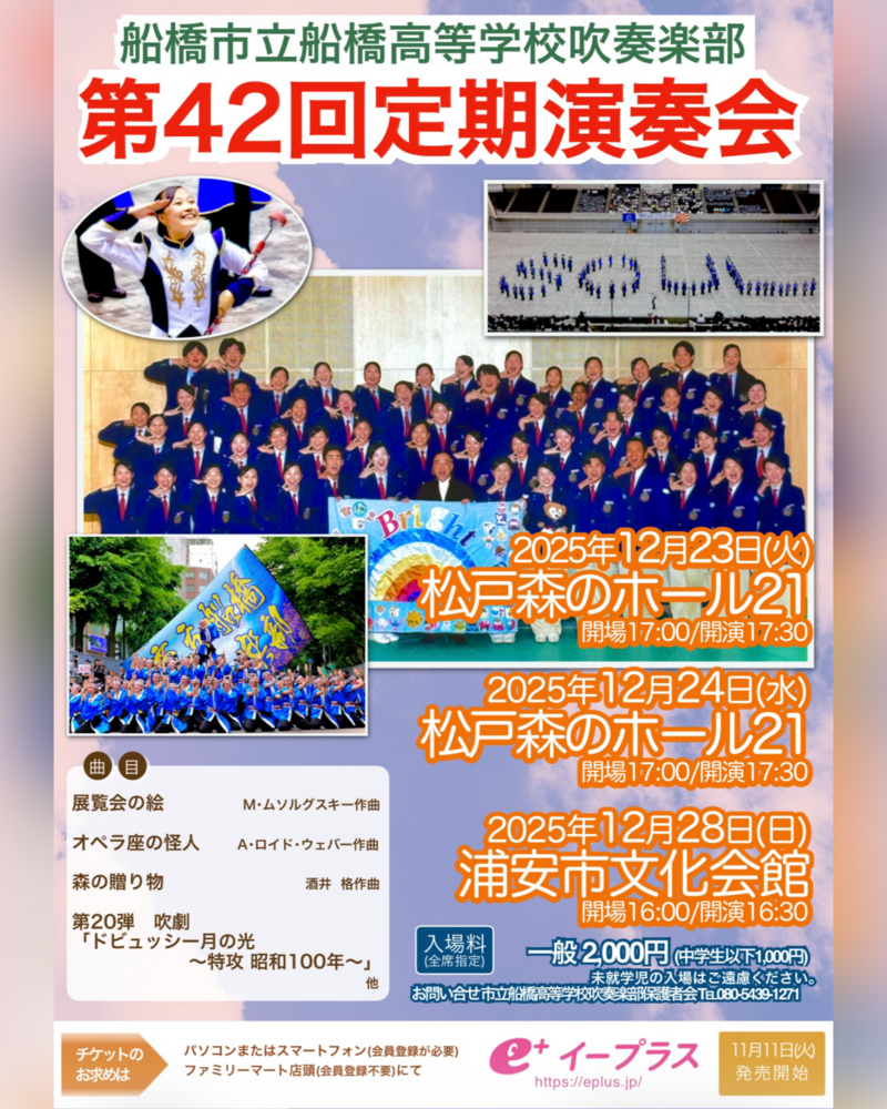 第42回定期演奏会のチケットが”イープラス”にて販売開始しました!!